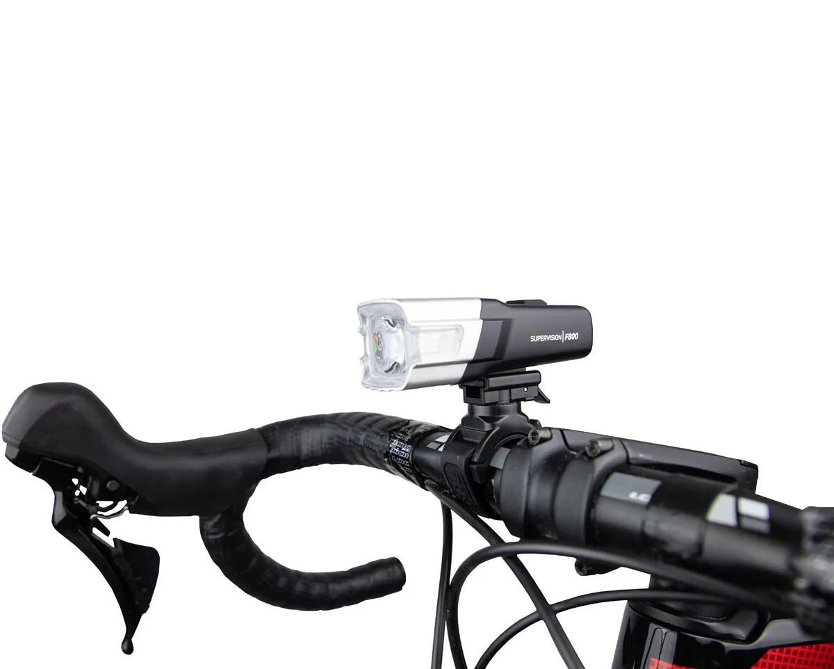 Le Supervision F800 est un éclairage avant pour vélo avec une forte luminosité pouvant atteindre 800 lumens. Il a été conçu pour les cyclistes exigeants recherchant fiabilité et performance. Sa lentille concentrant la lumière sur la route, il convient particulièrement aux cyclistes et vététistes qui recherchent une visibilité maximale et une sécurité accrue lors de leurs déplacements nocturnes sur routes ou chemins. Le Supervision F800 est certifié IPX6, résistant à l'eau et aux impacts. Monté sur son support ajustable, son boitier en aluminium usiné a été étudié pour refroidir plus rapidement. Son bouton central facilite son utilisation par un accès rapide aux différents modes de réglages. Des indicateurs de mode et de batterie sont présents afin de savoir à tout moment le mode en cours et l'autonomie restante. Cet éclairage est doté de 5 modes de fonctionnement : 3 modes continus et 2 modes clignotants.