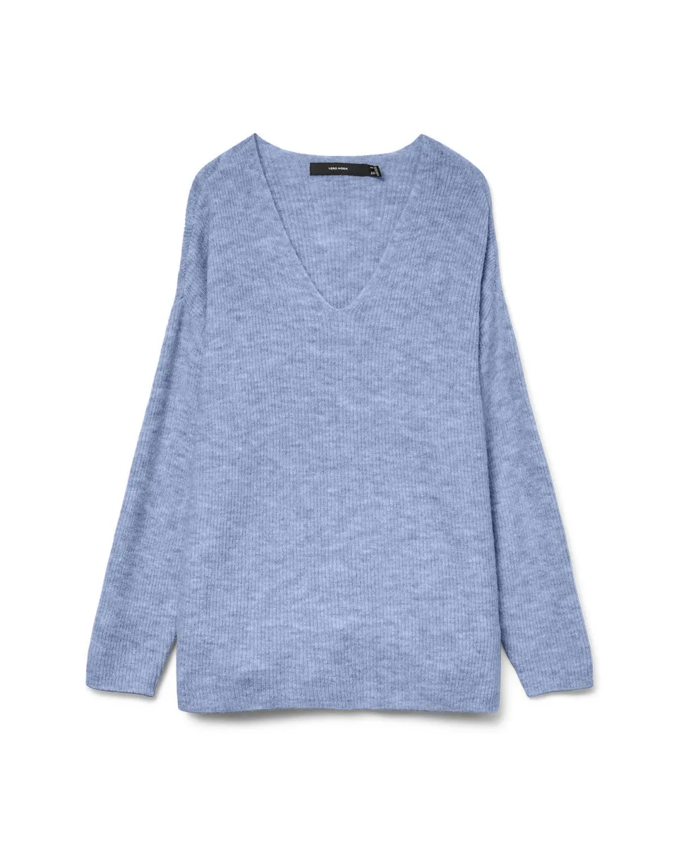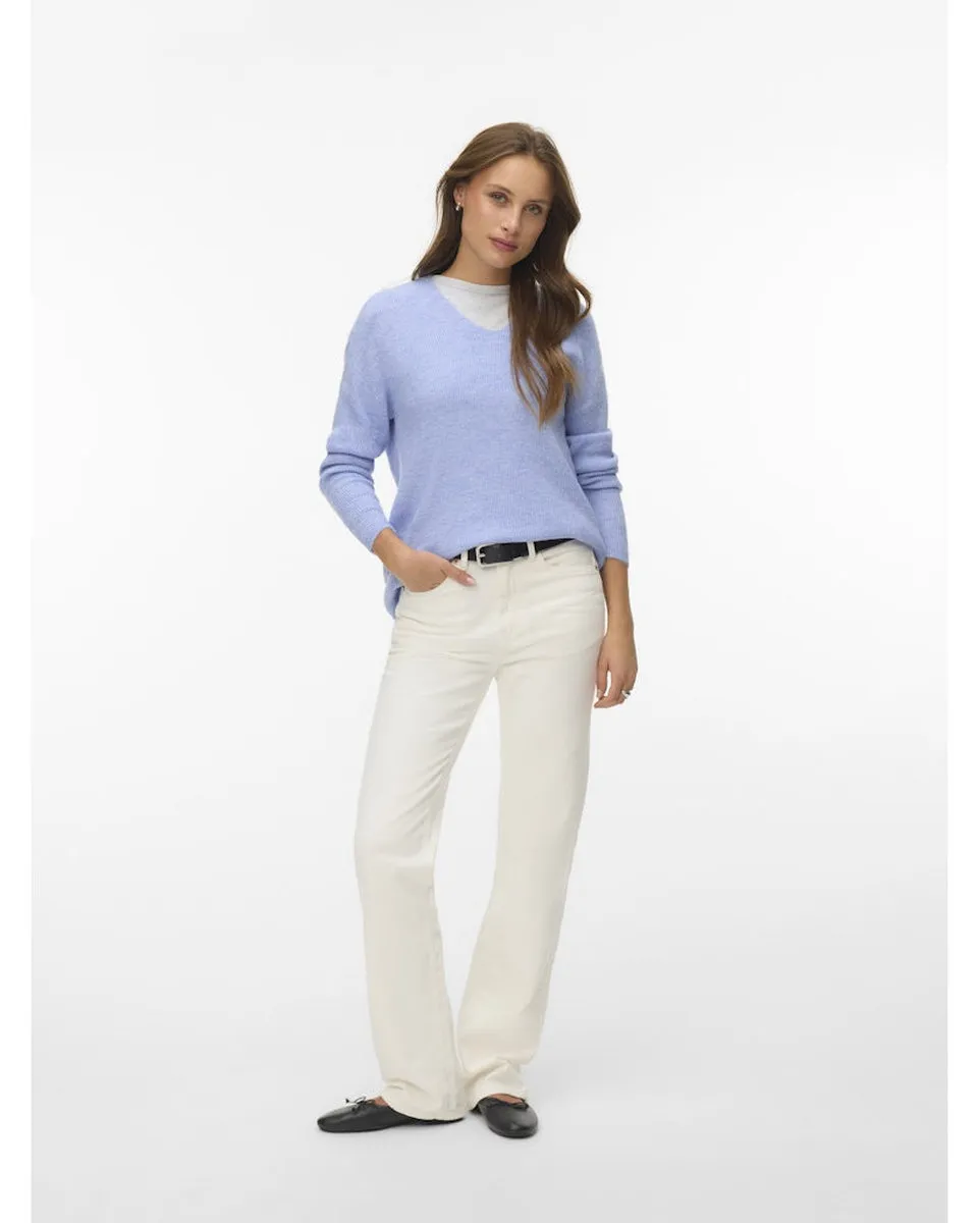 Pull Femme VMCREWLEFILE LS V-NECK BLOUSE NOOS Bleu VERO MODA - Ref 10233357-083