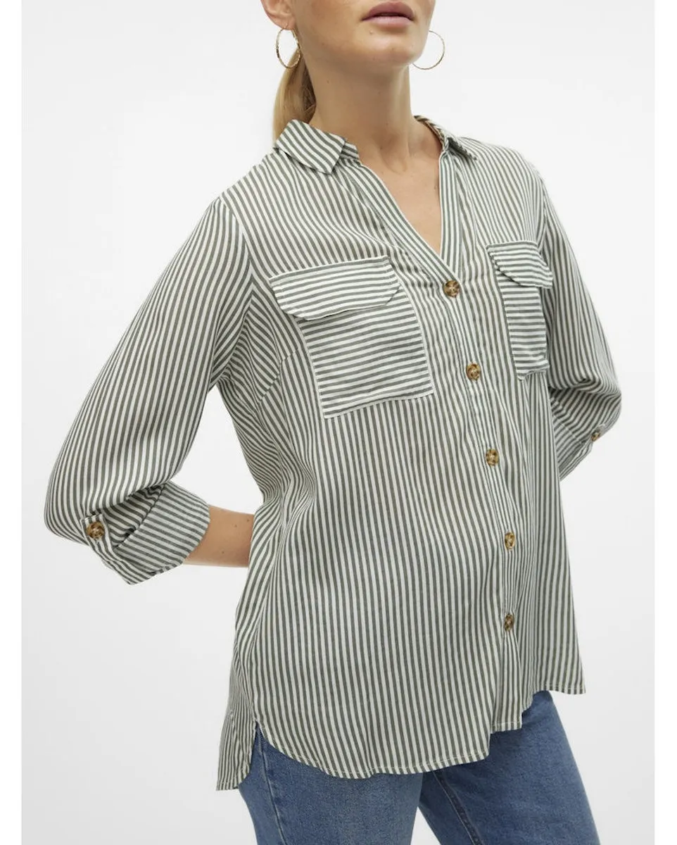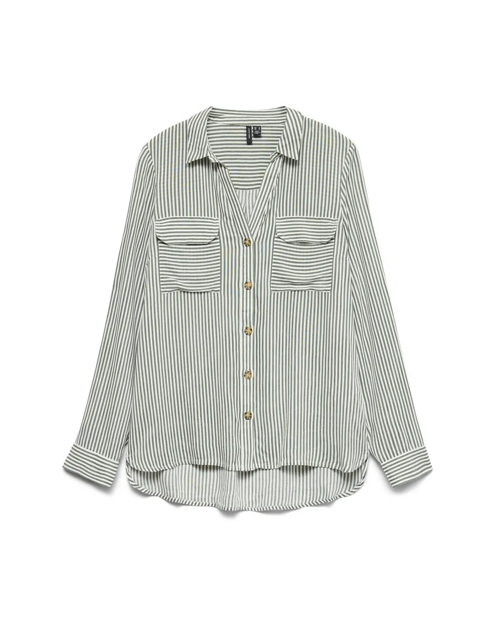 Chemisier Femme VMBUMPY L/S SHIRT NEW WVN GA NOOS Vert Rayé VERO MODA - Ref 10275283-023