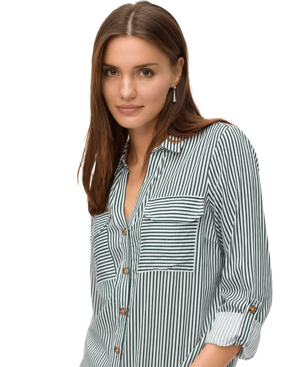 La chemise VERO MODA à manches longues allie élégance et confort avec son ajustement regular et ses détails soignés. Dotée d'un col chemise, de poignets boutonnés et de manches roulables, elle se porte aussi bien fermée qu'ouverte sur un top pour un look décontracté ou habillé. Sa poche poitrine et son dos légèrement allongé avec fentes latérales ajoutent une touche moderne à cette pièce intemporelle.