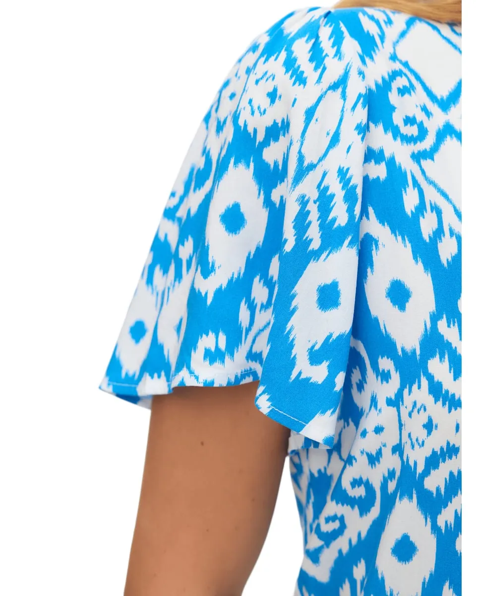 Top col V Femme VMEASY JOY V-NECK SS BLOUSE WVN GA Bleu à motifs VERO MODA - Ref 10307987-012
