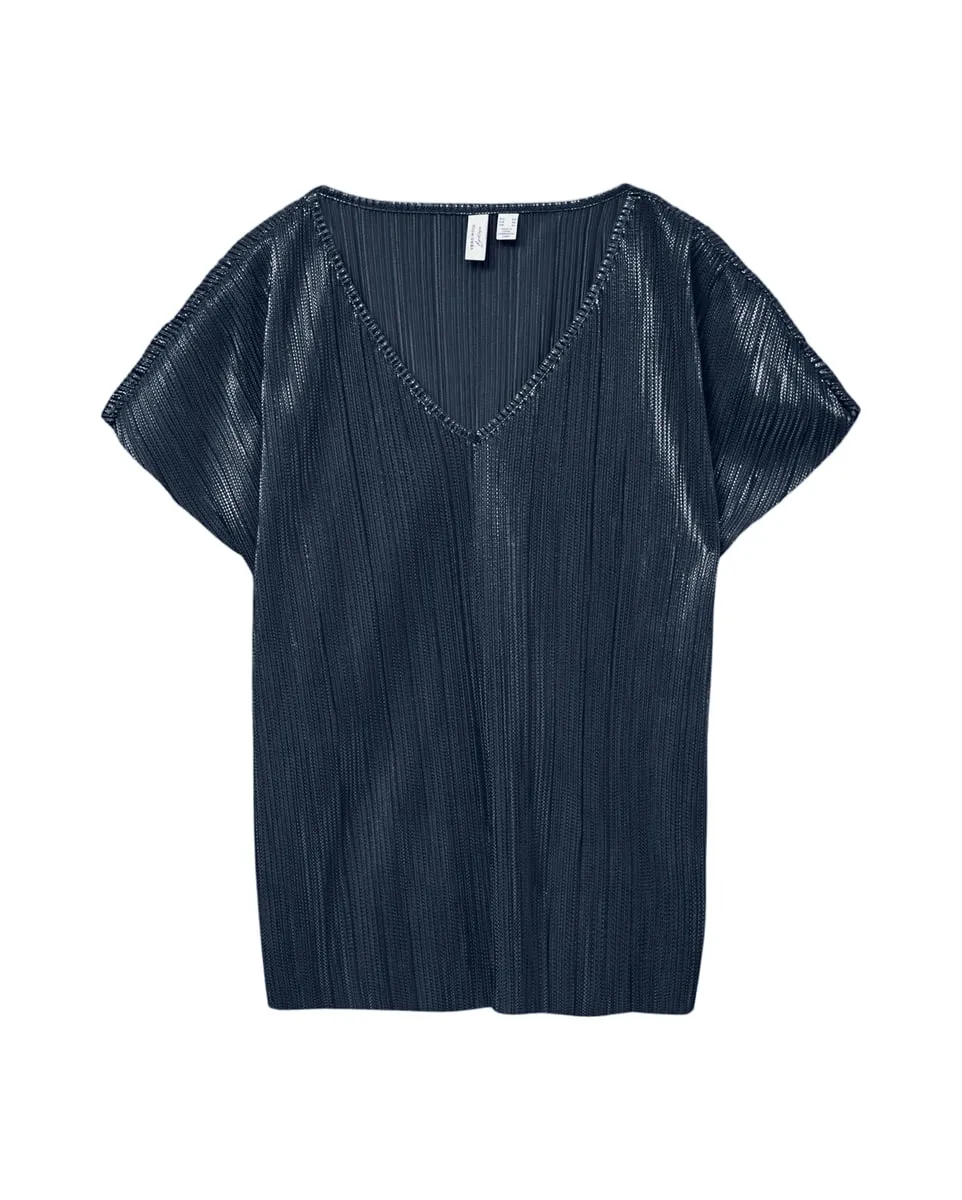 T-shirt col V Femme VMVALDOLA S/S V-NECK T-SHIRT JRS BTQ Noir VERO MODA - Ref 10323324-002