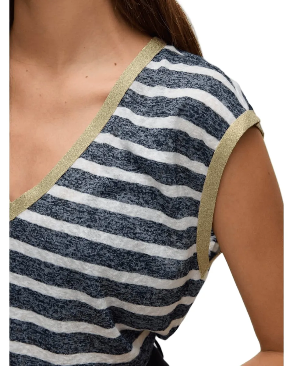 T-shirt col V Femme VMBALDO STRIPE S/L V-NECK TOP JRS B Blanc/Bleu Marine VERO MODA - Ref 10325322-002