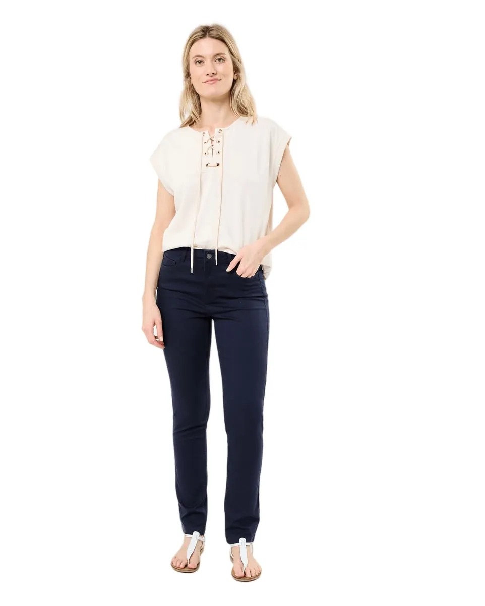 Composition : 50% polyester, 43% viscose, 7% élasthanne