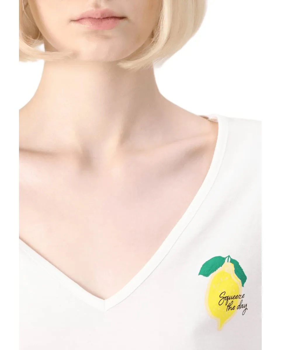 T-shirt col V Femme VMBITONA S/S V-NECK T-SHIRT JRS BTQ Blanc VERO MODA - Ref 10329476-001
