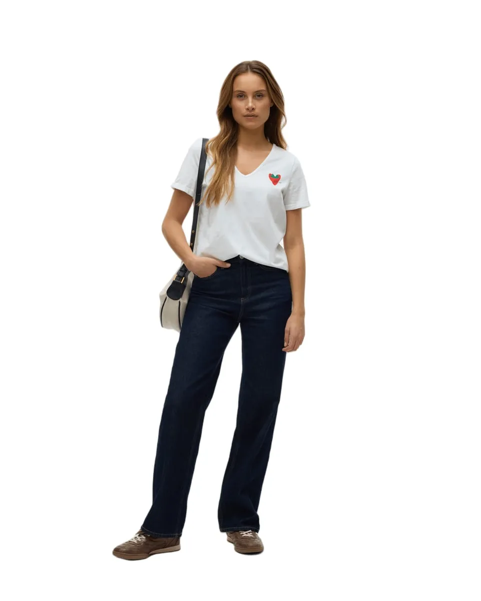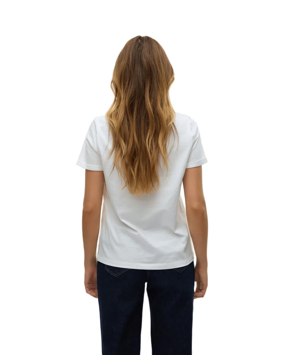 T-shirt col V Femme VMBITONA S/S V-NECK T-SHIRT JRS BTQ Blanc VERO MODA - Ref 10329476-002