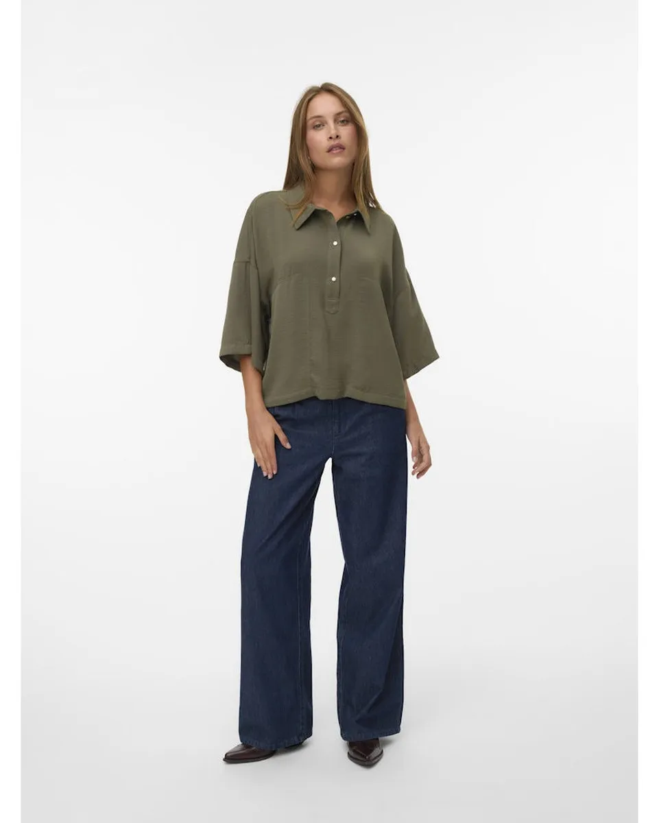 Chemise Femme VMICELYN 3/4 SHIRT WVN BTQ Vert VERO MODA - Ref 10340881-002