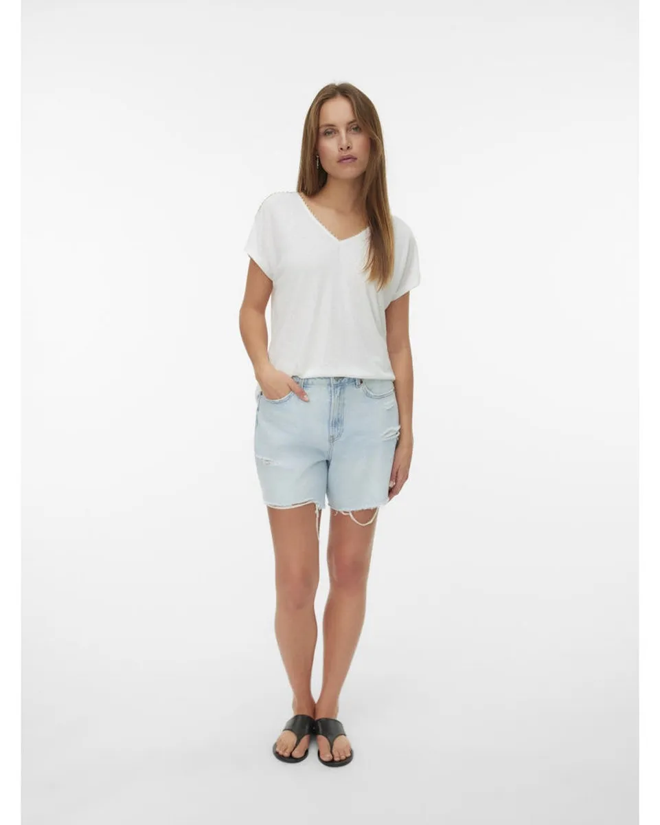 T-shirt Femme VMJACKIE S/L V-NECK TOP JRS BTQ Blanc VERO MODA - Ref 10342229-003