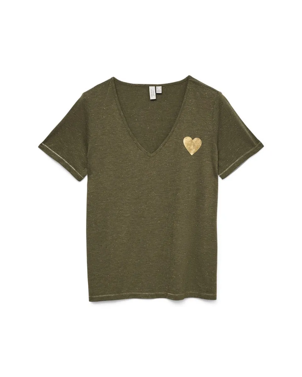 T-shirt Femme VMJATINKA S/S V-NECK TOP JRS BTQ Vert VERO MODA - Ref 10343088-002