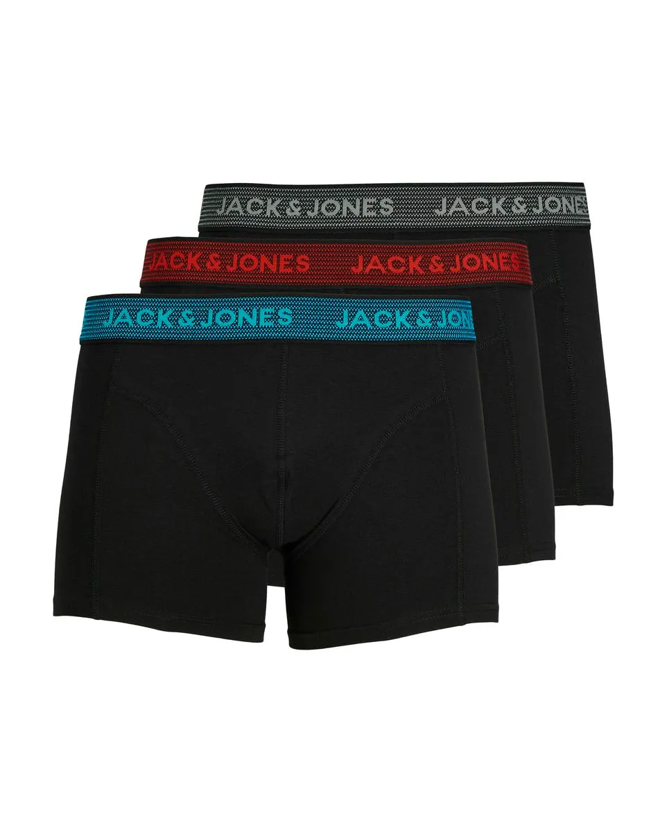 1 lot de 3 Caleçons Homme JACWAISTBAND TRUNKS 3 PACK NOOS Noir JACK AND JONES - Ref 12127816-001