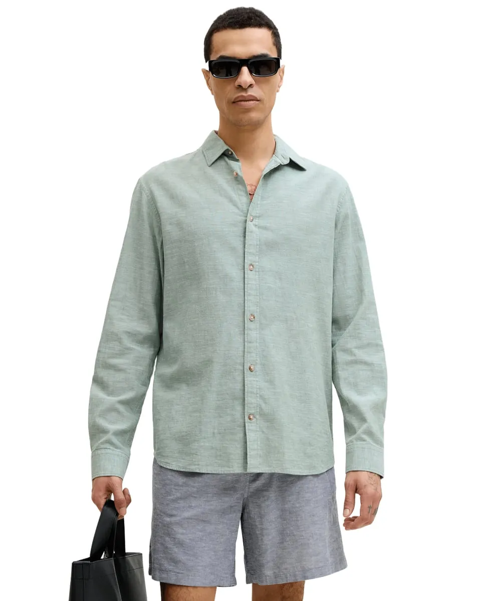 La chemise JJESUMMER en mélange lin de Jack & Jones allie élégance et confort pour les journées estivales. Avec son tissu respirant composé de 30 % de lin, 30 % de coton bio et 20 % de coton recyclé, elle offre une sensation de légèreté tout en restant résistante. Son ajustement regular fit, son col classique et ses poignets boutonnés en font un basique intemporel, idéal pour un look décontracté ou habillé. Disponible en Granite Green, elle apporte une touche de fraîcheur à vos tenues. Lavable en machine à 40 °C, elle est conçue pour un entretien facile sans compromis sur la qualité.