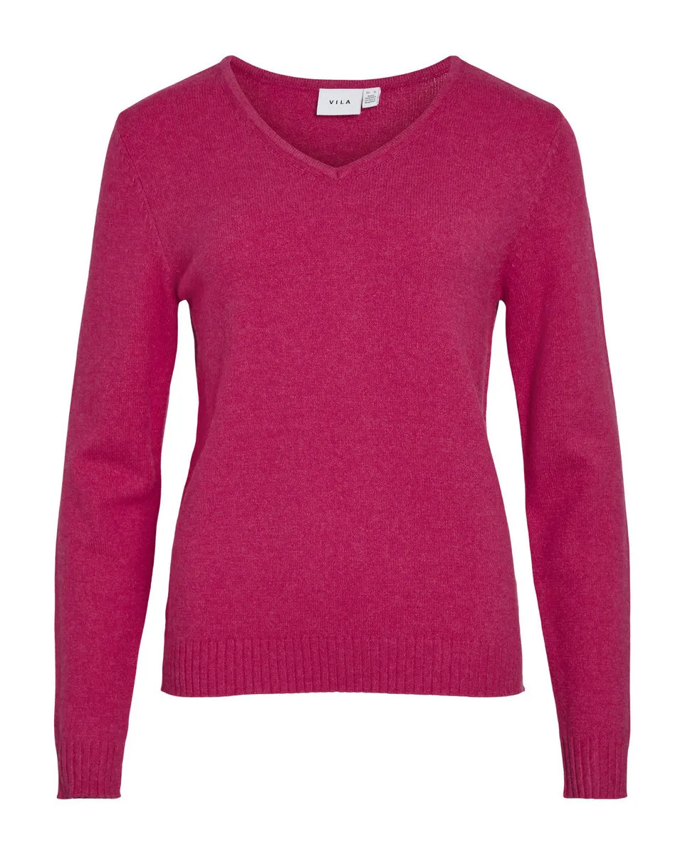 Pull col V Femme VIRIL V-NECK L/S KNIT TOP NOOS Rose VILA - Ref 14042769-027