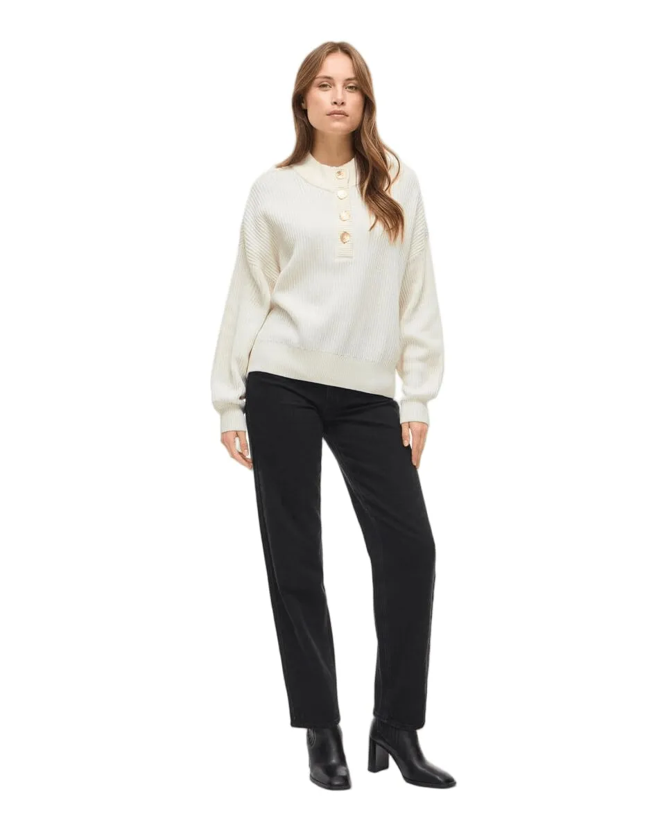 Pull col rond Femme VICHING CREW NECK L/S KNIT TOP NOOS Écru VILA - Ref 14106387-001