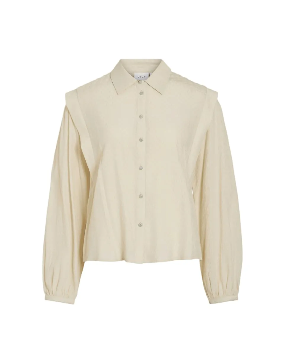 Chemisier Femme VIDAYSA L/S QUILT DETAIL SHIRT/C34 Écru VILA - Ref 14109126-001