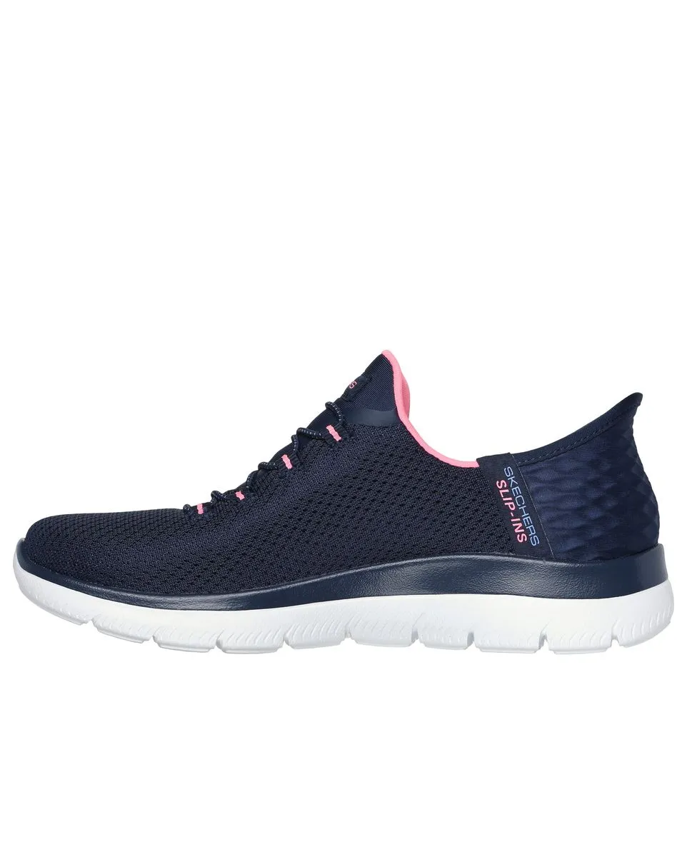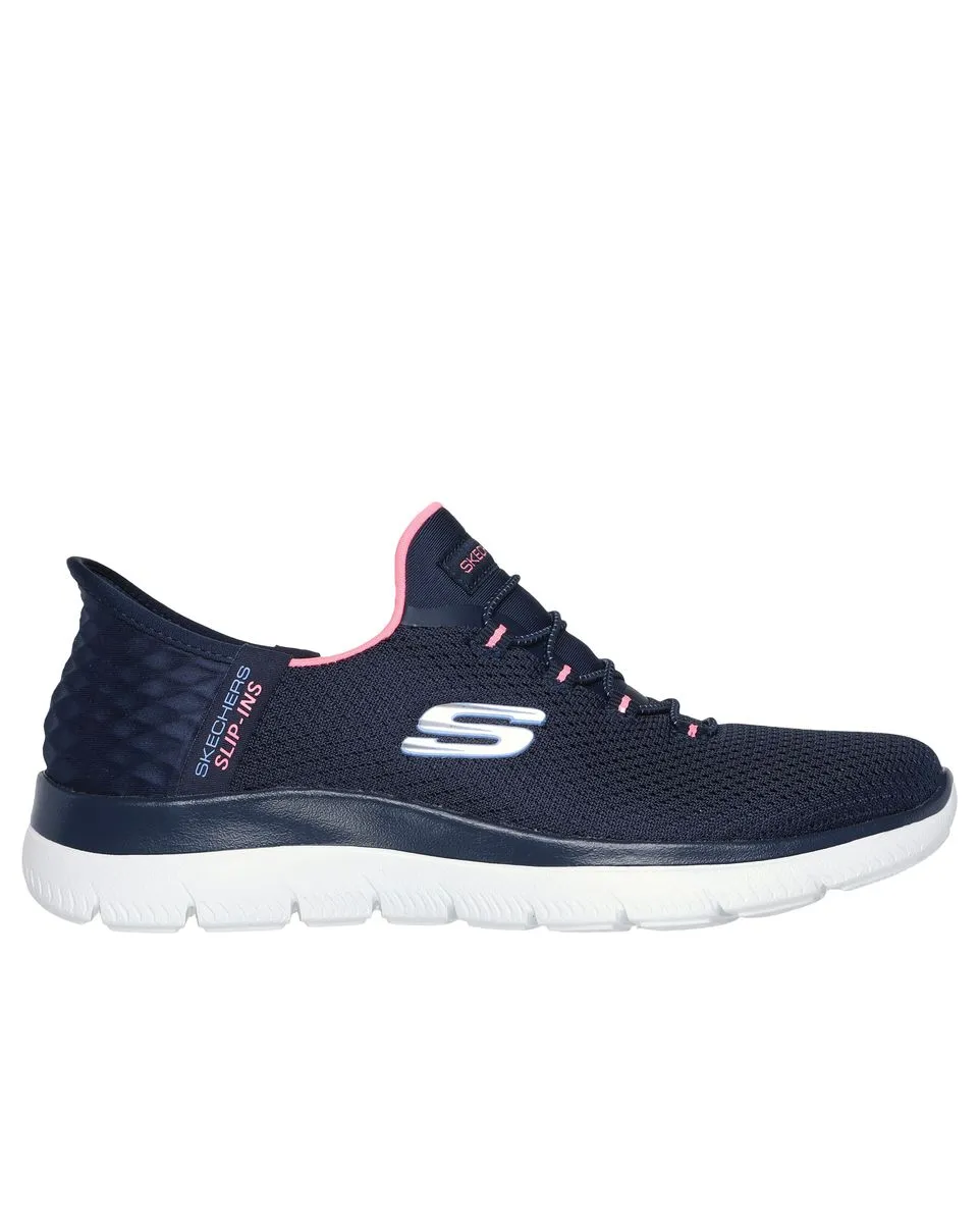 Accélérez le rythme avec une facilité de port accrue et un confort platine en portant les Skechers Hands Free Slip-ins® : Summits - Diamond Dream. Conçu avec notre Heel Pillow™ exclusif, ce style végétalien comprend une tige en mesh avec des lacets extensibles et une semelle intérieure confortable Skechers Air-Cooled Memory Foam®.