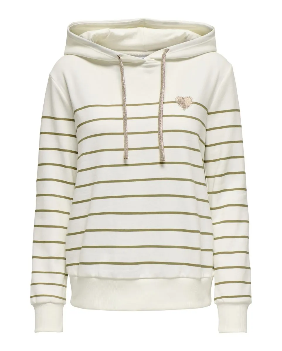 Sweatshirt à capuche manches longues Femme ONLADELLE L/S STRIPE HOOD SWT Blanc ONLY - Ref 15318962-003