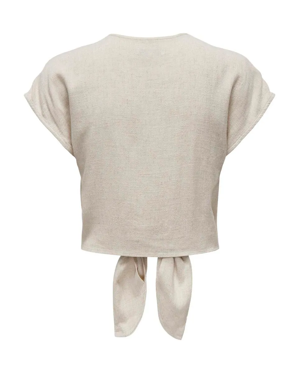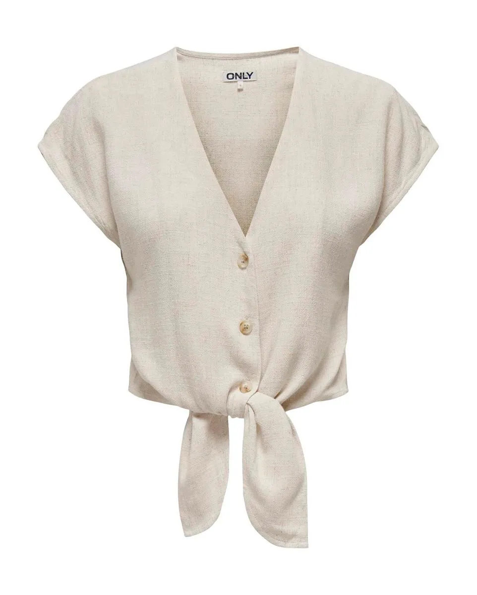 Chemise manches courtes Femme ONLSIESTA SS KNOT LIN BL SHIRT PNT NOOS Gris ONLY - Ref 15322270-004