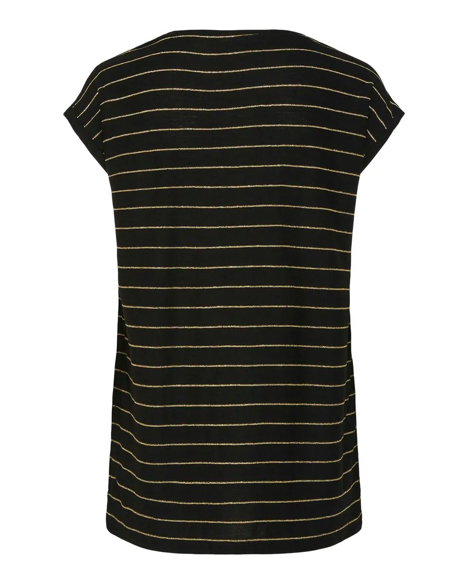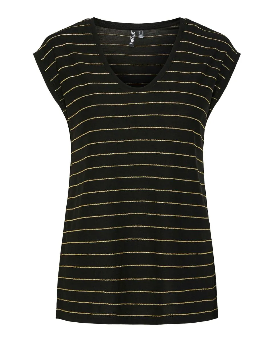 T-shirt manches courtes Femme Pieces PCBILLO TEE LUREX STRIPES NOOS BC Noir en vente à prix attractif chez Sport 2000