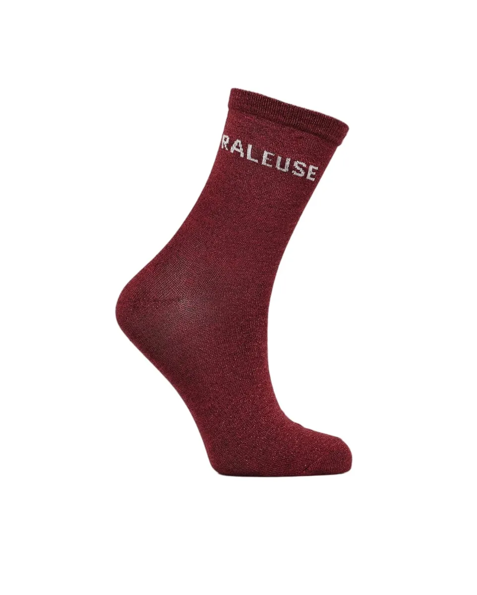 Chaussettes Femme SOLIA LUREX SOCKS Bordeaux PIECES - Ref 17163724-009