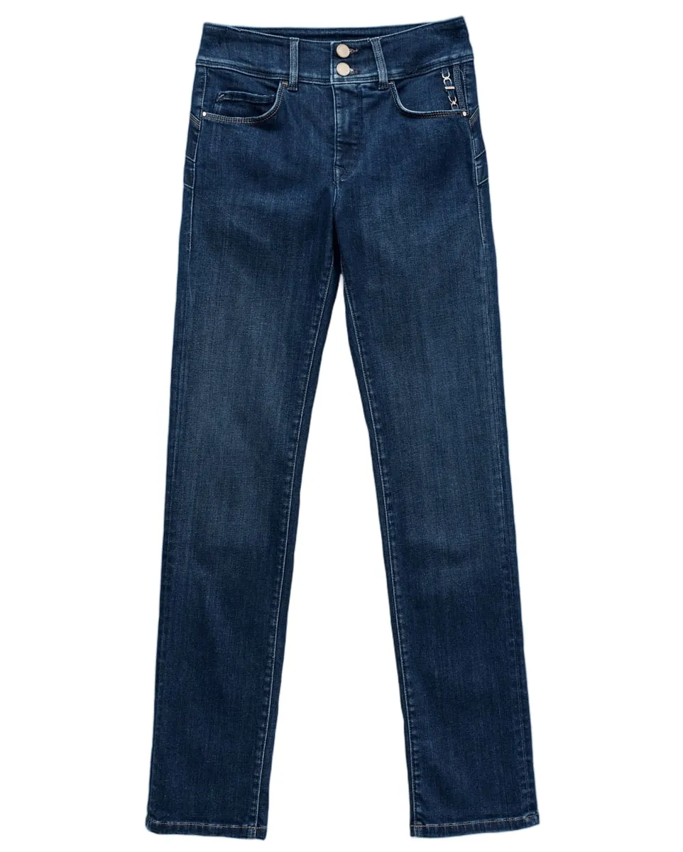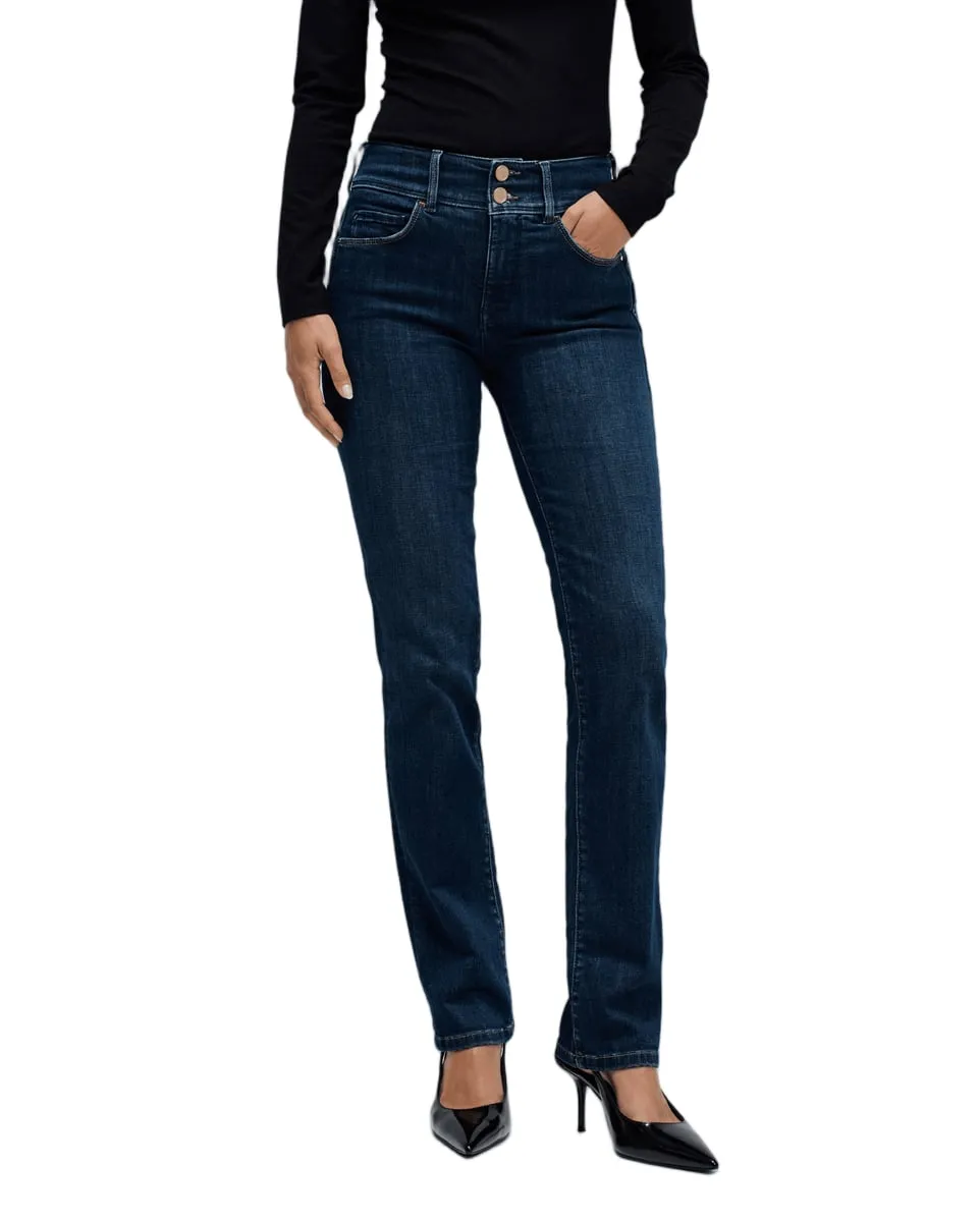 Le jean Secret Push In, à taille mi-haute et braguette à deux boutons, est doté d'un empiècement intérieur spécialement conçu pour sculpter votre taille et vous offrir un confort optimal. Deux pinces latérales assurent une coupe parfaite. Il prouve que l'élégance peut aussi se porter en jean.
