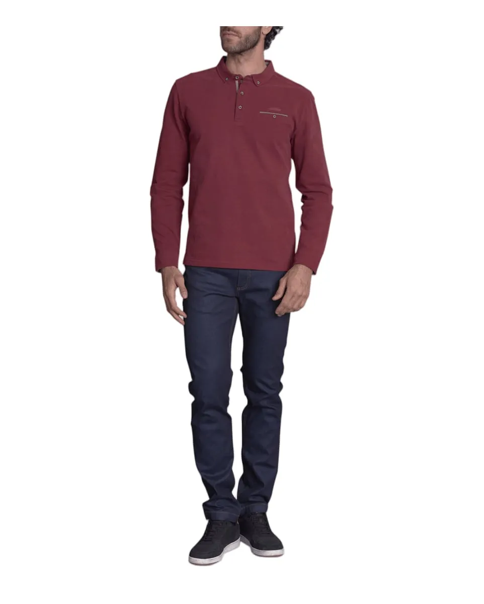Polo manches longues Homme LUNEVILLE Rubis DELAHAYE - Ref 490484-000-834
