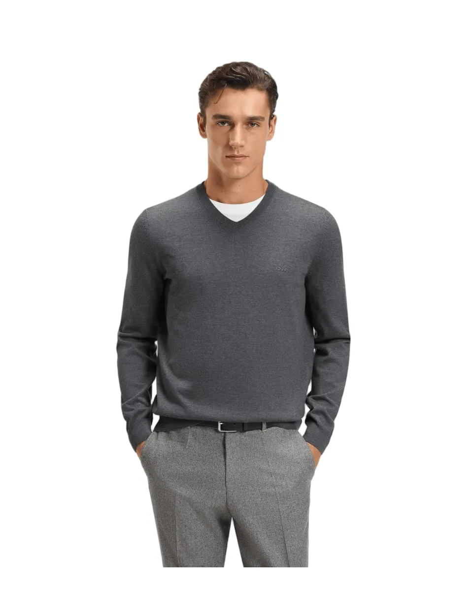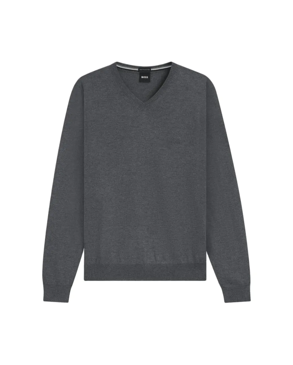 Pull col V Homme BARAM-L Gris Medium BOSS - Ref 50476363-030