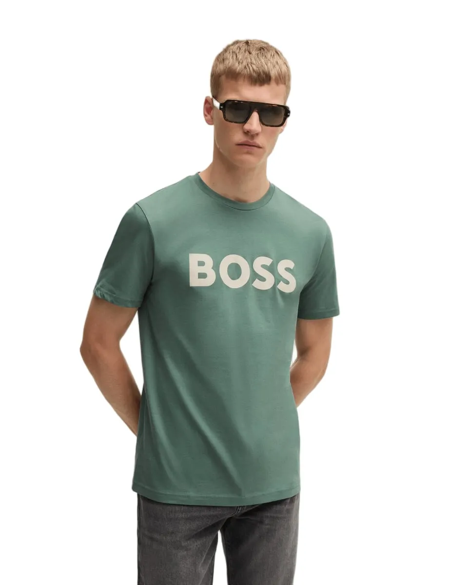 Avec un audacieux logo imprimé en gomme en contraste, ce t-shirt Regular BOSS Homme arbore une coupe casual. Fabriqué en jersey doux 100% coton.