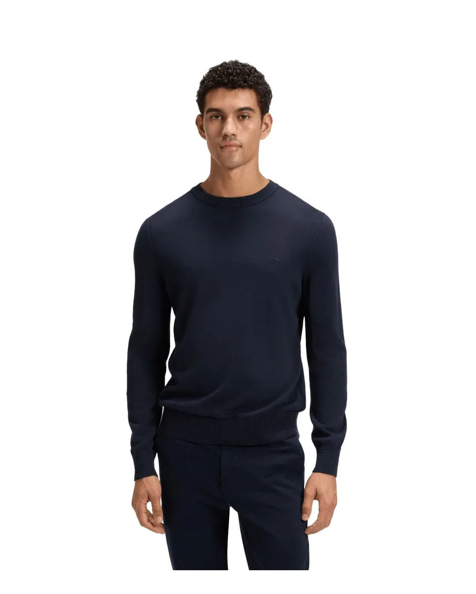 Ce pull en jersey signé BOSS allie élégance intemporelle et confort au quotidien. Avec sa coupe regular fit, il épouse parfaitement la silhouette pour un look à la fois décontracté et soigné. Brodé du célèbre logo BOSS sur la poitrine et rehaussé de détails discrets aux épaules, il mise sur un design épuré et des finitions côtelées au col, aux poignets et à la base pour une touche de raffinement.