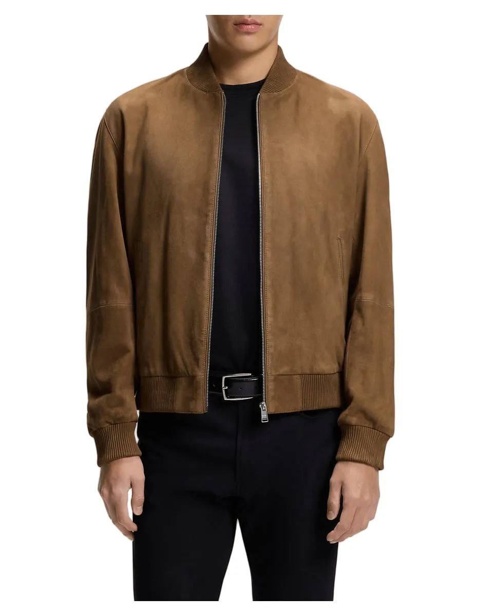 Avec des finitions esprit blouson aviateur, cette veste BOSS Homme est confectionnée en cuir suédé pour un toucher doux. Coupe droite avec fermeture éclair sur le devant.