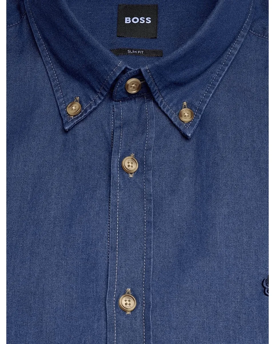 Découvrez la chemise homme BOSS H-Roan, une pièce raffinée pensée pour l’homme moderne. Conçue en coton de haute qualité, cette chemise Slim Fit épouse subtilement la silhouette sans compromettre le confort. Son tissu denim bleu profond apporte une touche de caractère à votre garde-robe, tandis que sa coupe ajustée et ses finitions soignées reflètent l’expertise savoir-faire de la marque BOSS.Black. Parfaite sous une veste ou portée seule, elle s’adapte à toutes les occasions - du bureau à vos sorties en ville.