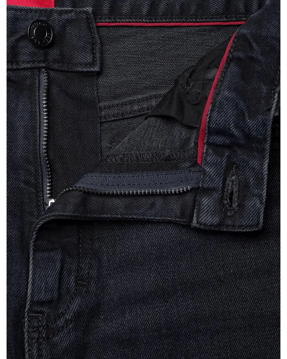 Rehaussez vos tenues décontractées grâce à la couleur bleu foncé et aux détails usés authentiques de ce jean HUGO Homme. Coupe Slim et droite.