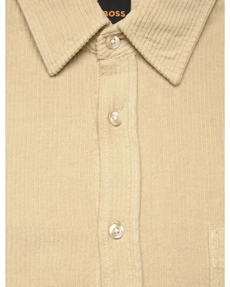 Vous ne pourrez plus vous passer de cette chemise Regular BOSS Homme décontractée confectionnée en velours côtelé de coton doux. Logo brodé sous la poche.