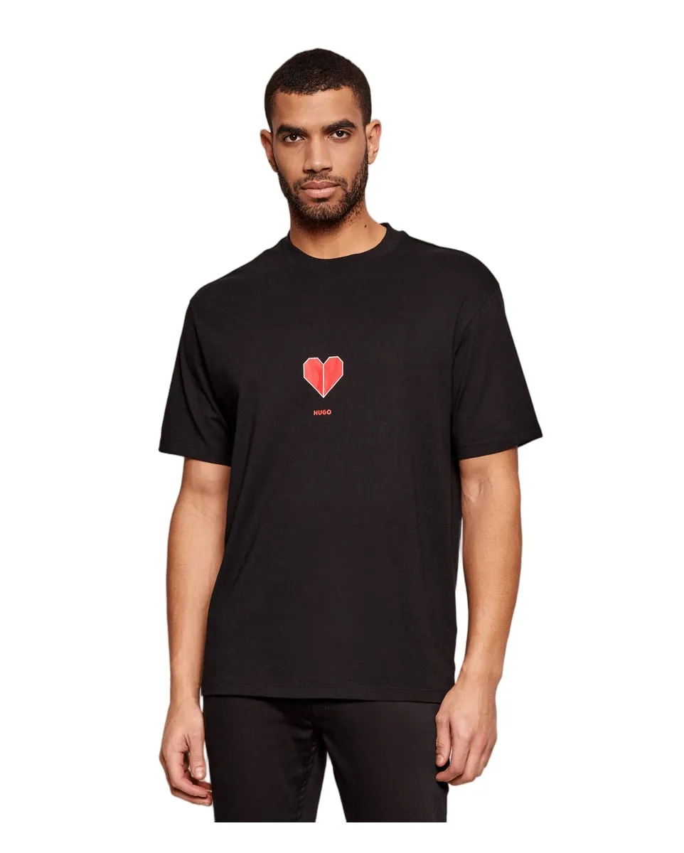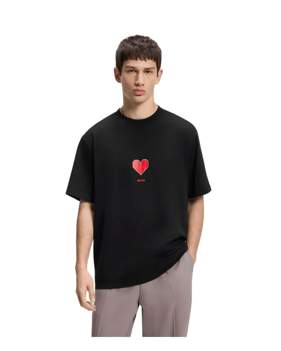 Ajoutez une touche de fraîcheur à vos tenues décontractées avec le motif cœur en origami de ce t-shirt HUGO Homme. Coupe décontractée en jersey de coton respirant.