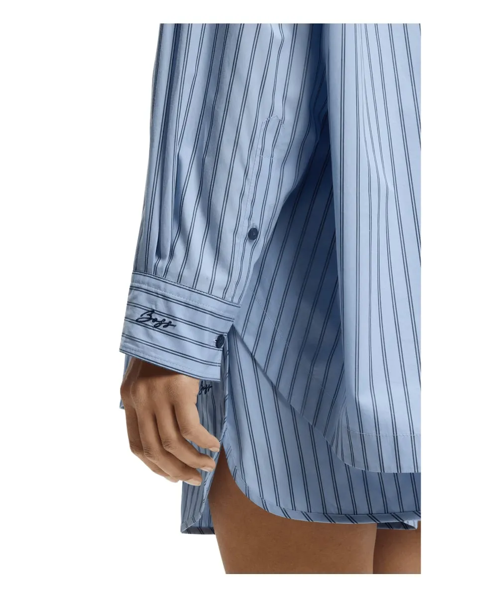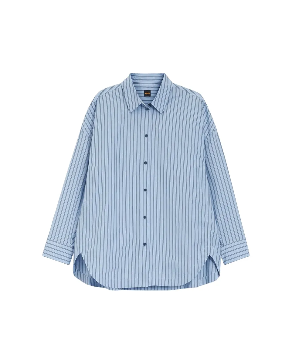La blouse BOSS C_BOSTATTA allie élégance intemporelle et modernité avec sa coupe oversize et son motif à rayures, parfait pour un look sophistiqué au quotidien. Confectionnée en popeline de coton au toucher papier, elle offre un confort léger tout en restant structurée. Ses manches longues à poignets boutonnés et son col à pointes ajoutent une touche raffinée, tandis que le logo brodé sur la manchette rappelle l’exigence de qualité de la maison BOSS. Un essentiel facile à entretenir, à laver à 30 °C pour préserver sa douceur et sa forme.