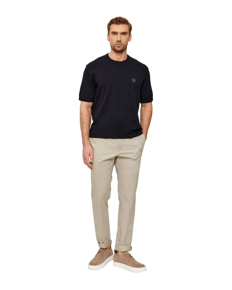 Ce t-shirt en tricot à manches courtes de la marque BOSS allie confort et élégance discrète pour un look casual chic. Confectionné dans un mélange premium de 95 % coton et 5 % cachemire, il offre une douceur incomparable tout en restant léger et respirant. Sa coupe regular fit épouse parfaitement la silhouette sans trop serrer, tandis qu’un patch logo carré, discret mais reconnaissable, rehausse la poitrine gauche. Disponible en bleu marine, gris ou bleu marine foncé, ainsi qu’en versions rayées, il s’adapte à toutes les occasions, du quotidien aux sorties décontractées.