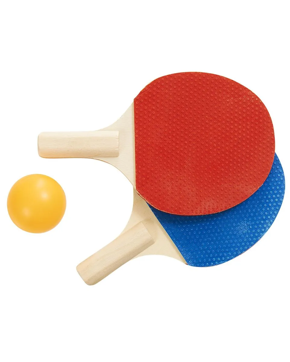 Contient 2 raquettes en bois avec revêtement en caoutchouc et polyuréthane, 1 balle, 1 filet en polyester et son support. Transformez n'importe quelle surface plane en table de ping-pong !
