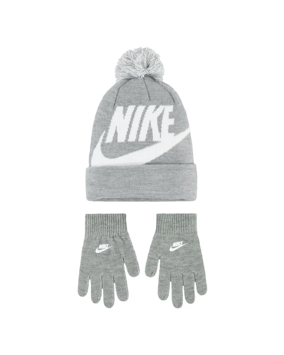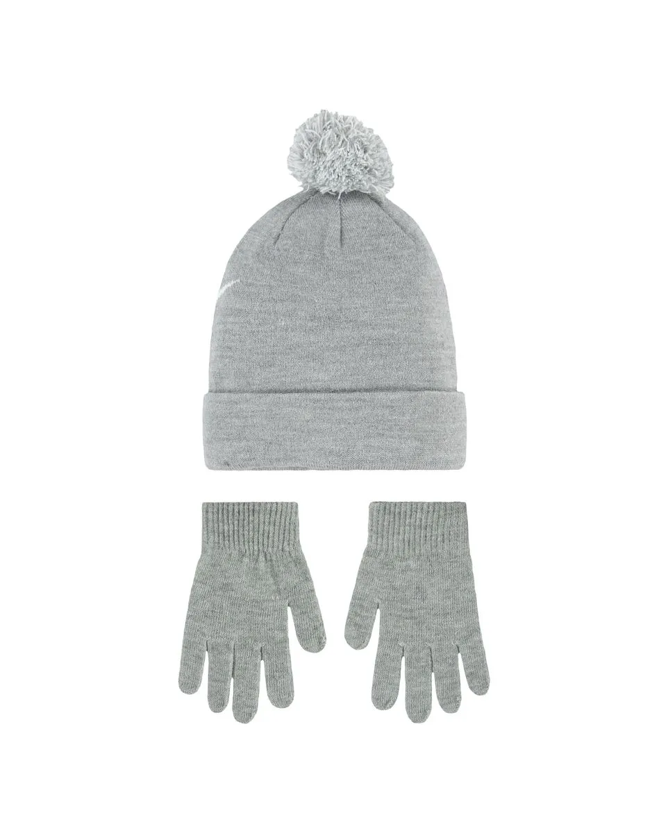 Ensemble bonnet et gants Enfant plus âgé NAN SWOOSH POM BEANIE GLV SET Gris NIKE 0-7 ANS - Ref 9A2695-042