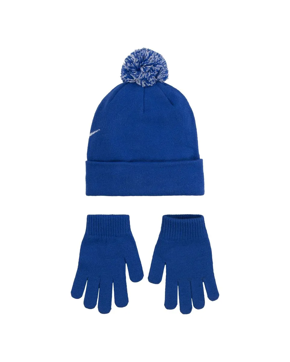 Ensemble bonnet et gants Enfant plus âgé NAN SWOOSH POM BEANIE GLV SET Bleu NIKE 0-7 ANS - Ref 9A2695-U89