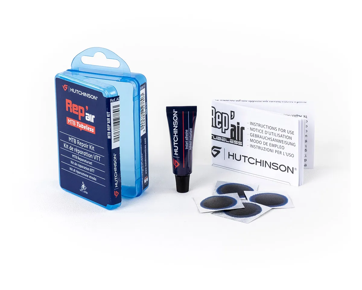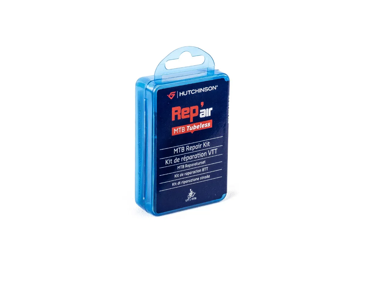 Le Rep'Air MTB Tubeless est un kit de réparation destiné aux pneumatiques Tubeless VTT. Il assure une réparation durable des pneumatiques Tubeless. Quelques gouttes d'adhésif instantané Hutchinson permettent de réparer, sans démontage, les crevaisons jusqu'à 1 mm. Au delà (dans la limite de 4 mm), la réparation s'effectue par la pose d'un patch à l'aide de quelques gouttes d'adhésif instantané. La formulation spéciale de l'adhésif instantané Hutchinson conserve toute sa souplesse pour assurer une excellente réparation quelle que soit la crevaison.