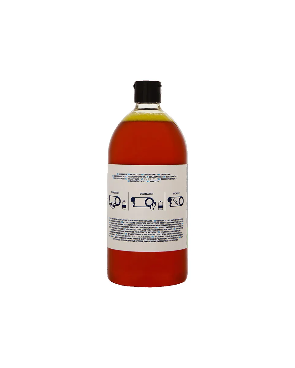 Le Bio DriveTrain Cleaner est un dégraissant à base de plantes. Il élimine sans effort les particules de graisse et de saleté les plus tenaces de votre cadre, de votre chaîne et de vos plateaux. Le Bio Drivetrain Cleaner peut être utilisé non dilué à condition de rincer soigneusement toutes les pièces à l'eau ensuite. Grâce à sa formule 100 % biodégradable, le dégraissant est complètement éliminé dans les 28 jours. Un indispensable pour nettoyer votre vélo sans produits chimiques.