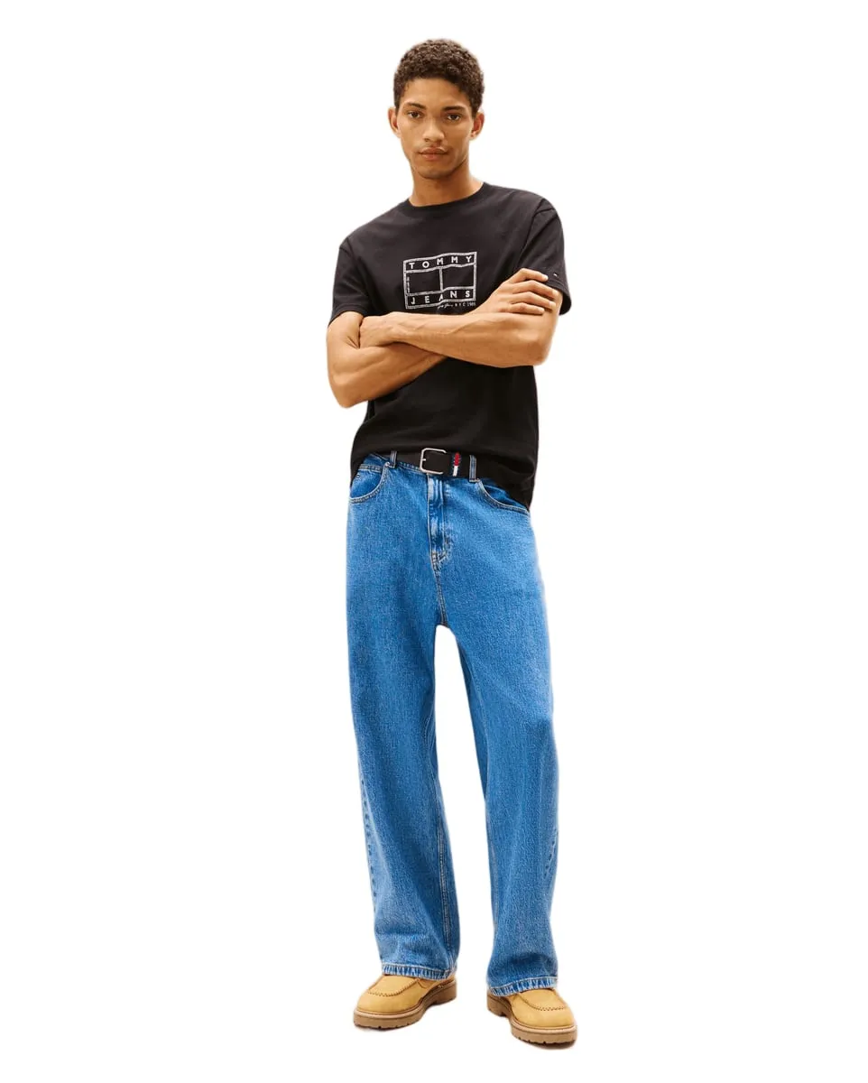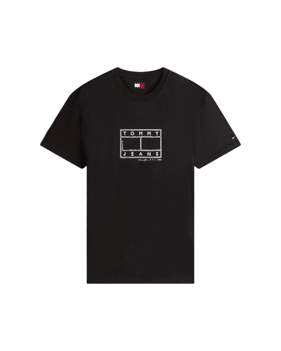 T-shirt col rond Homme REG CENTER FLAG Noir TOMMY JEANS - Ref DM0DM22317-BDS