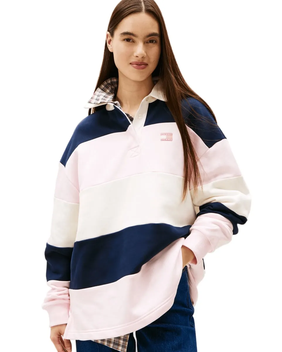 Polo manches longues Femme BADGE STRIPE RUG Rose Pale/Marine TOMMY JEANS - Ref DW0DW21927-TOG