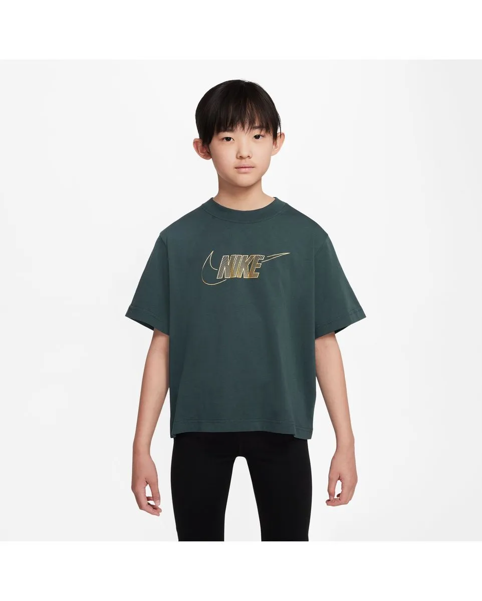 T-shirt manches courtes Enfant G NSW TEE BOXY METALLIC HBR Vert NIKE - Ref FJ6785-328
