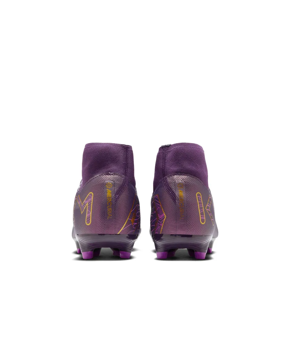 Chaussure de foot montante à crampons multi-surfaces Inspirée de la tenue que porte Kylian les jours de match, cette Superfly 10 Academy libère toute ta vitesse. Avec des éléments qui rappellent la chaussure de foot Player Edition la plus emblématique de Kylian depuis 2018, elle booste ton accélération grâce à son amorti Air Zoom et une nouvelle plaque d'adhérence.