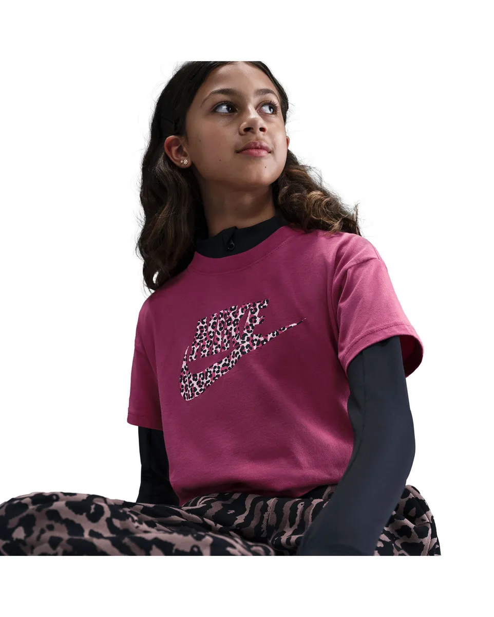 T-shirt Fille G NSW TEE BOXY ANIMAL PRINT Rose NIKE - Ref IO4909-634