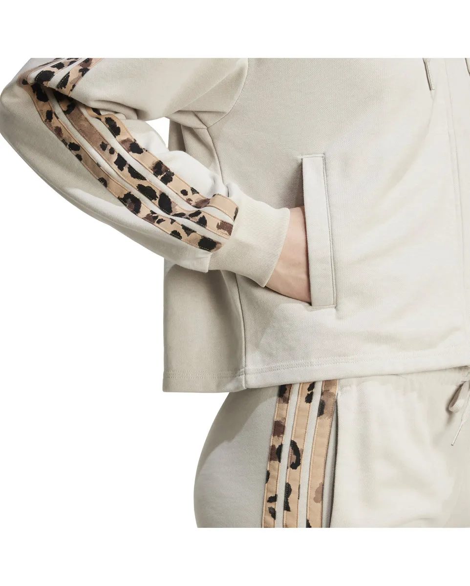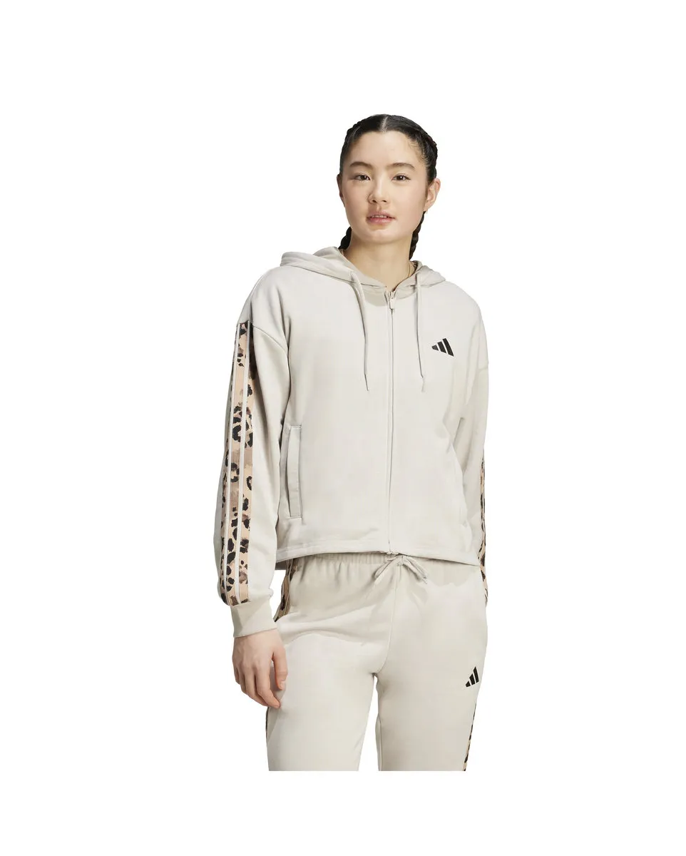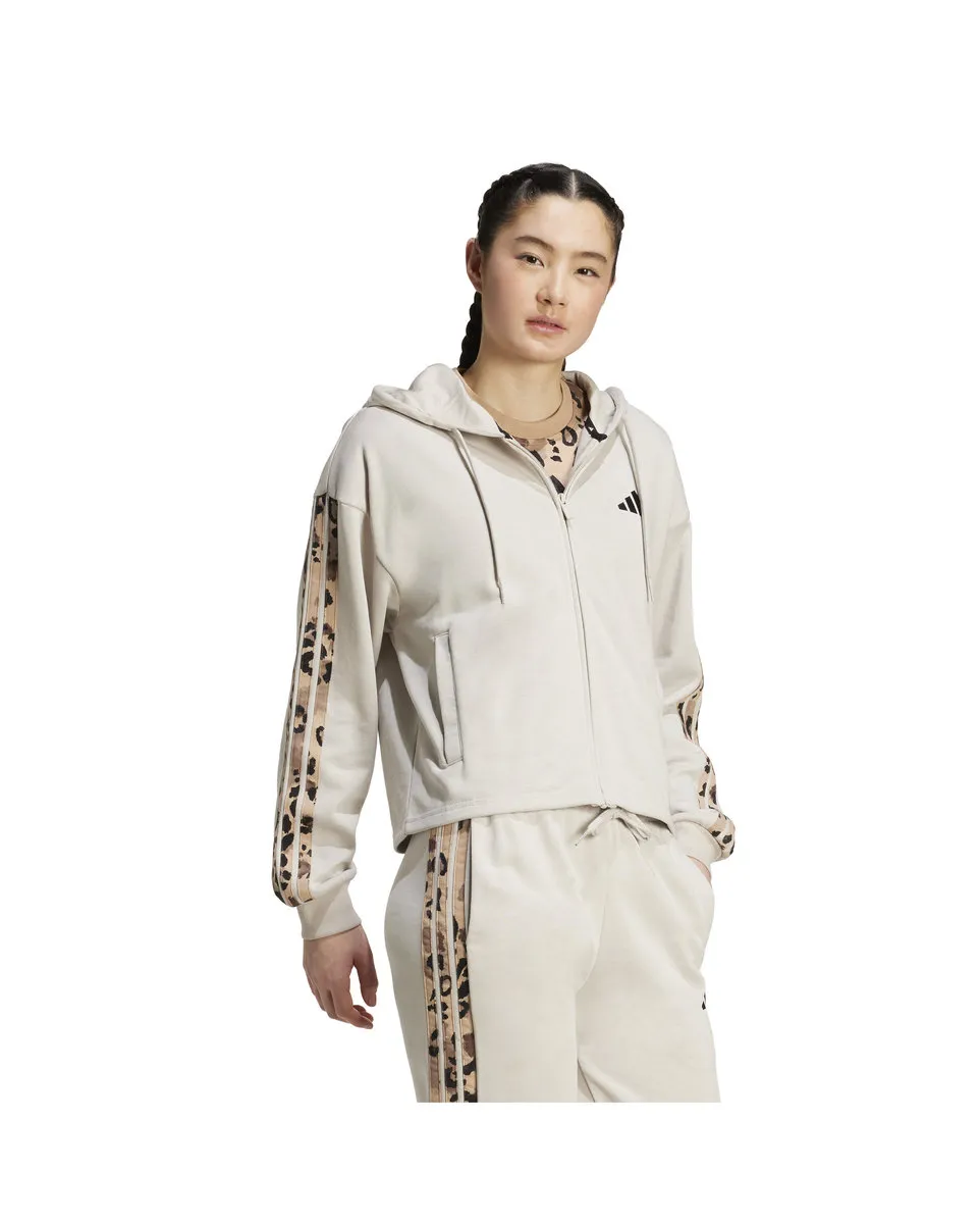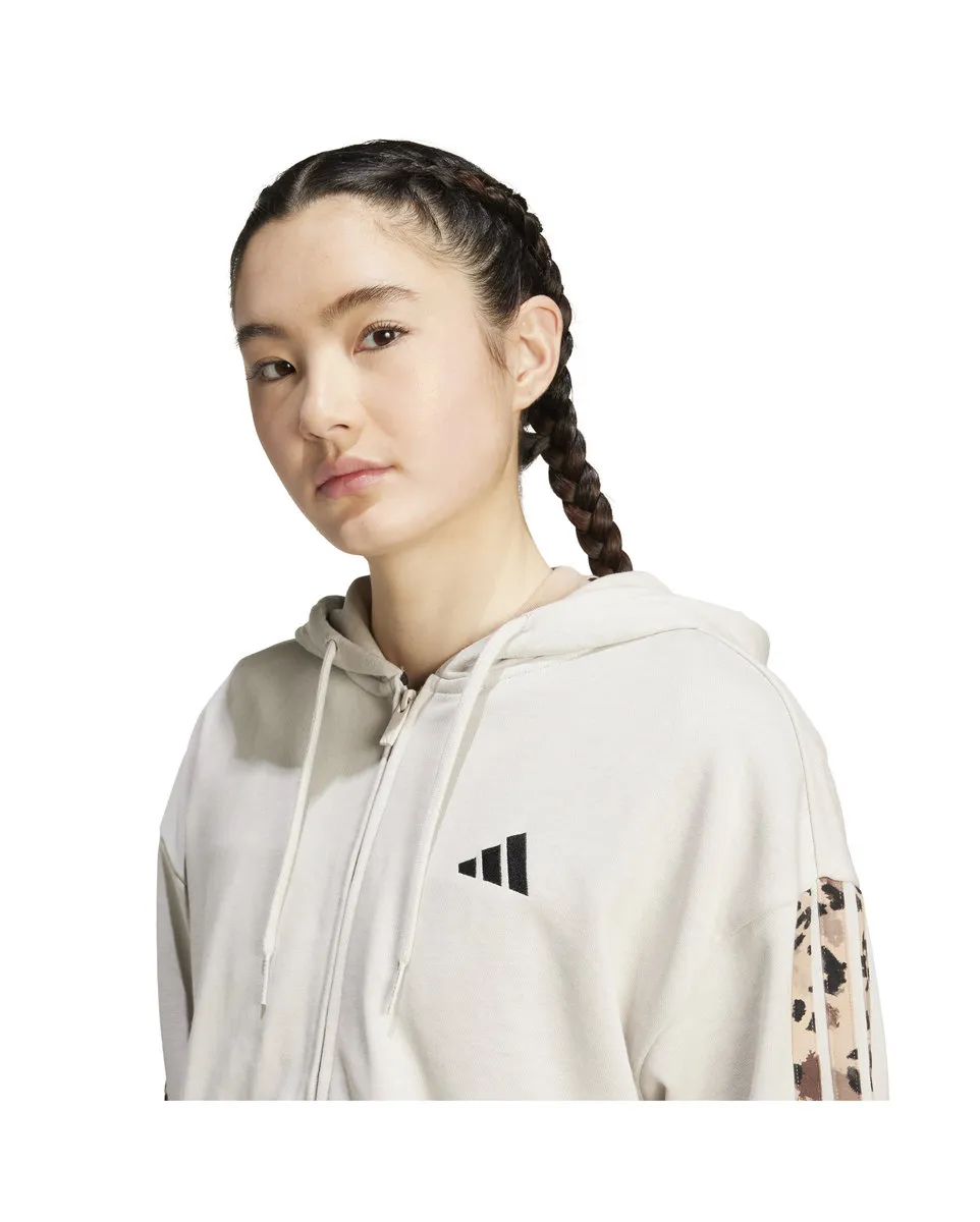 Sweat zip à capuche Femme W AOP FT FZ Beige ADIDAS - Ref JM1860