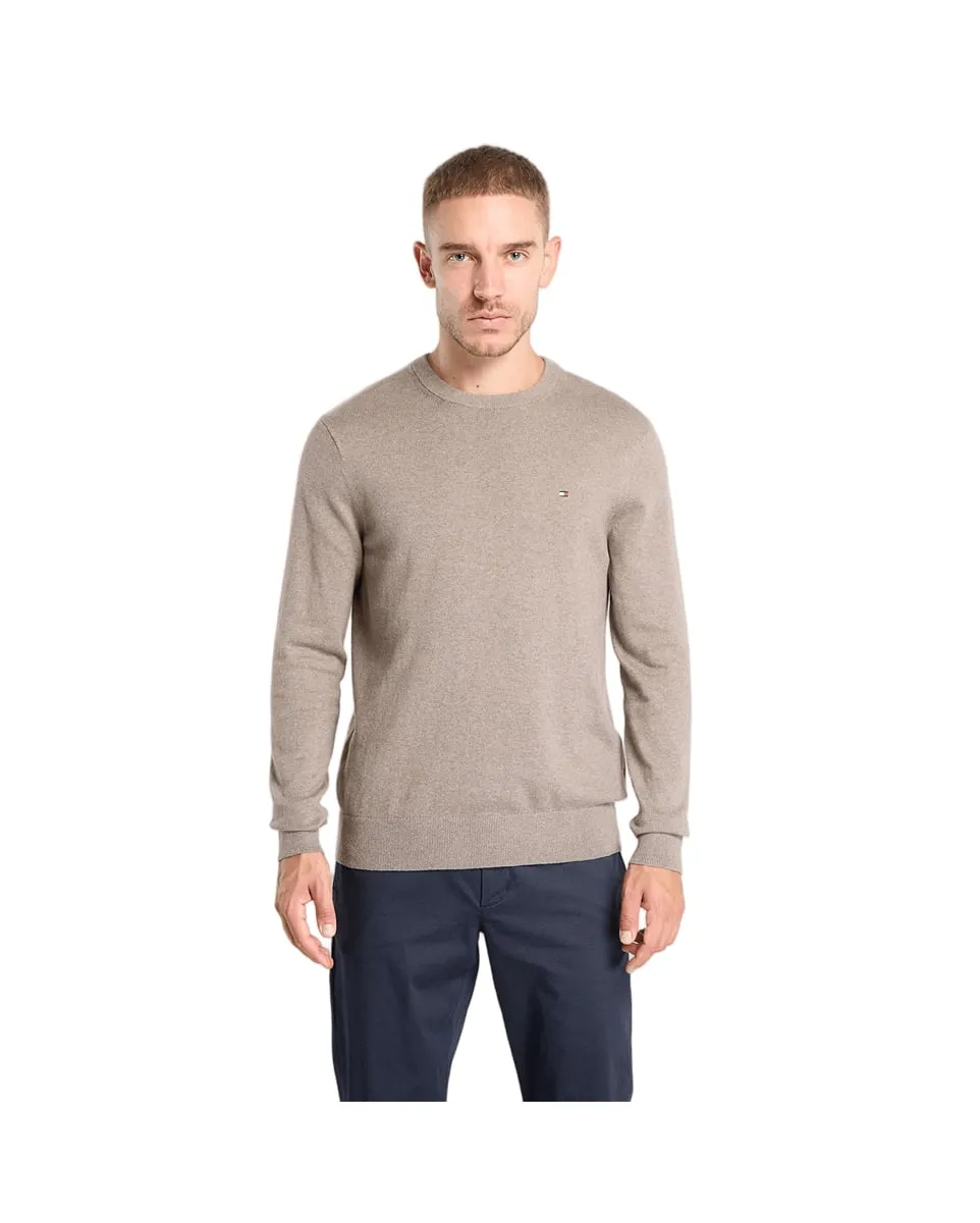 Pull col rond Homme PIMA ORG CTN CASHMERE CREW NECK Taupe Chiné TOMMY HILFIGER - Ref MW0MW28046-HI3