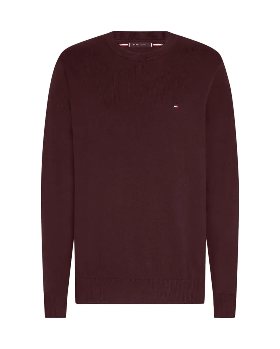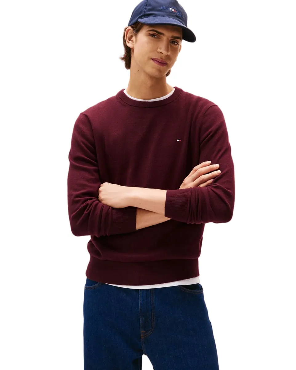 Pull col rond Homme PIMA ORG CTN CASHMERE CREW NECK Bordeaux TOMMY HILFIGER - Ref MW0MW28046-XIH