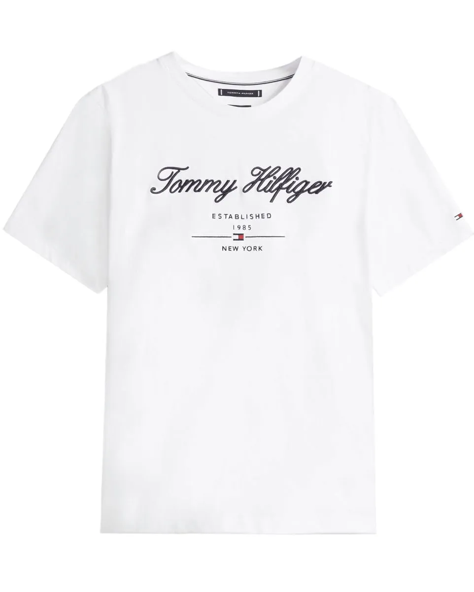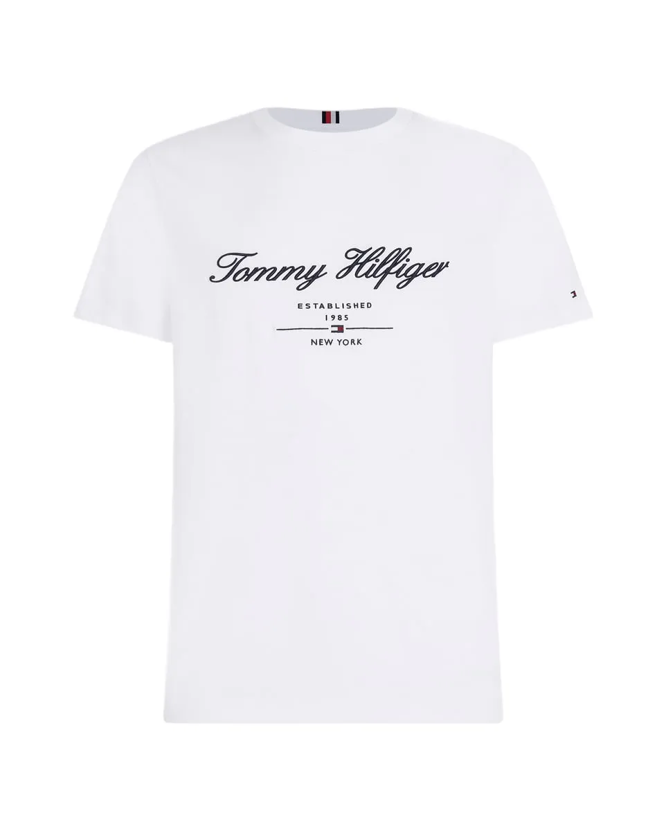 Rehaussez vos tenues décontractées avec ce t-shirt en jersey de pur coton, orné du logo Tommy Hilfiger calligraphié pour une touche signature.