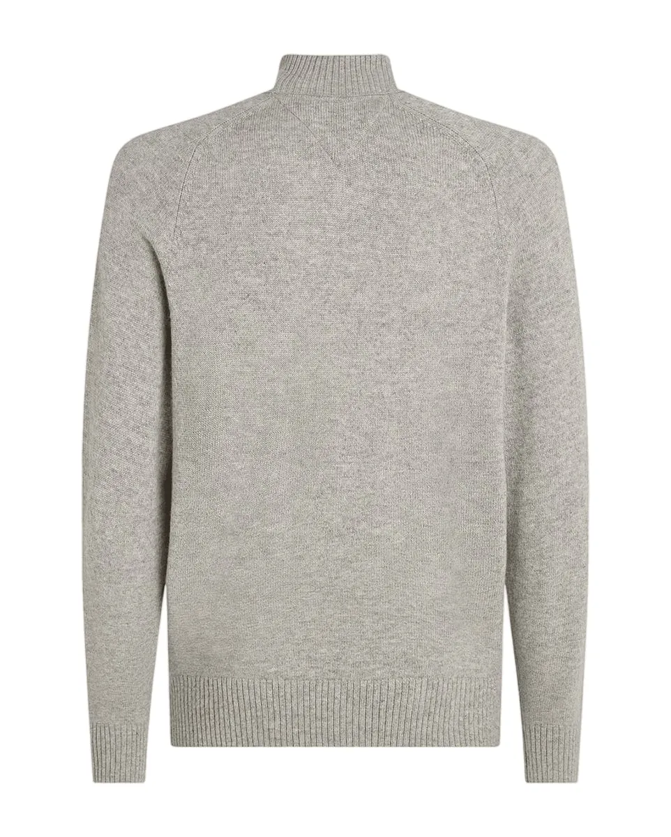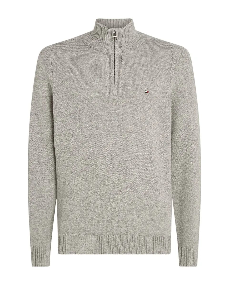 Pull col zippé Homme LAMBSWOOL ZIP MOCK Bleu Chiné TOMMY HILFIGER - Ref MW0MW36536-AFL